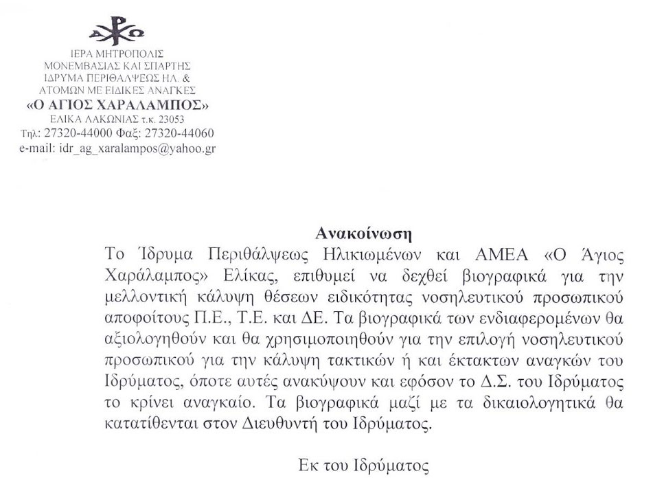 Ανακοίνωση για υποβολή βιογραφικών