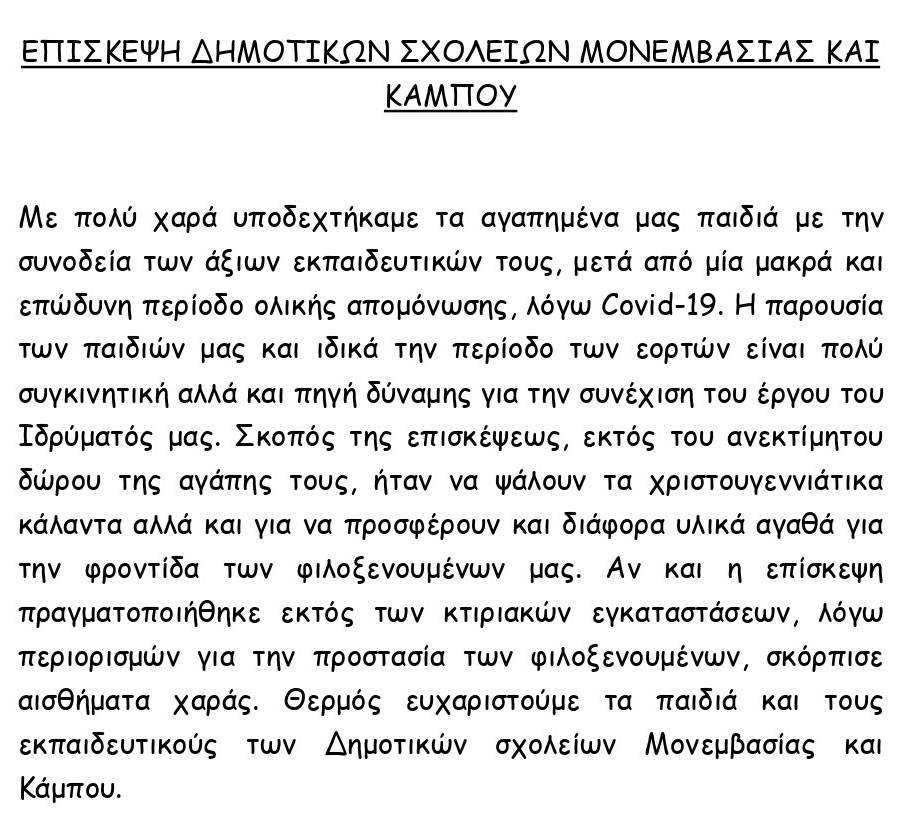 Επίσκεψη Δημοτικών Σχολείων Μονεμβασίας και Κάμπου
